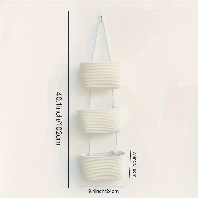 Keep your home tidy with this 1pc 2/3-Tier Rope Woven Hanging Basket. Featuring a detachable, multi-compartment design, it’s perfect for storing bathroom essentials, bedroom items, or living room accessories. Crafted from durable fabric and styled in a contemporary design, it can hang over doors or walls to maximize space without clutter. A versatile and decorative organizer for every room.
