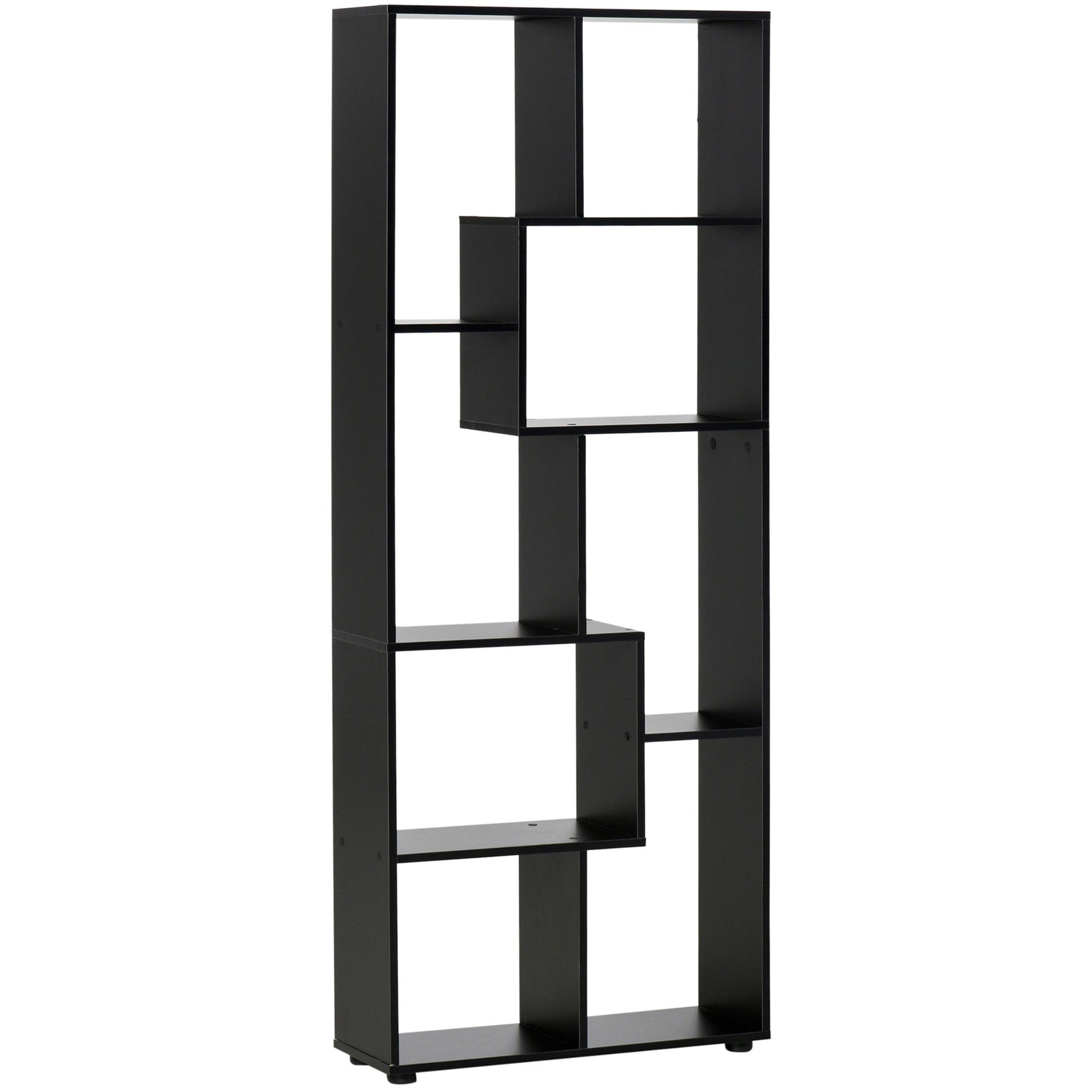 - 1 x 8-Tier Freestanding Bookcase w/ Melamine Surface Anti-Tipping Foot Pads Home Display Storage Grid Stand Bedroom Living Room Furniture Modern Style- Black