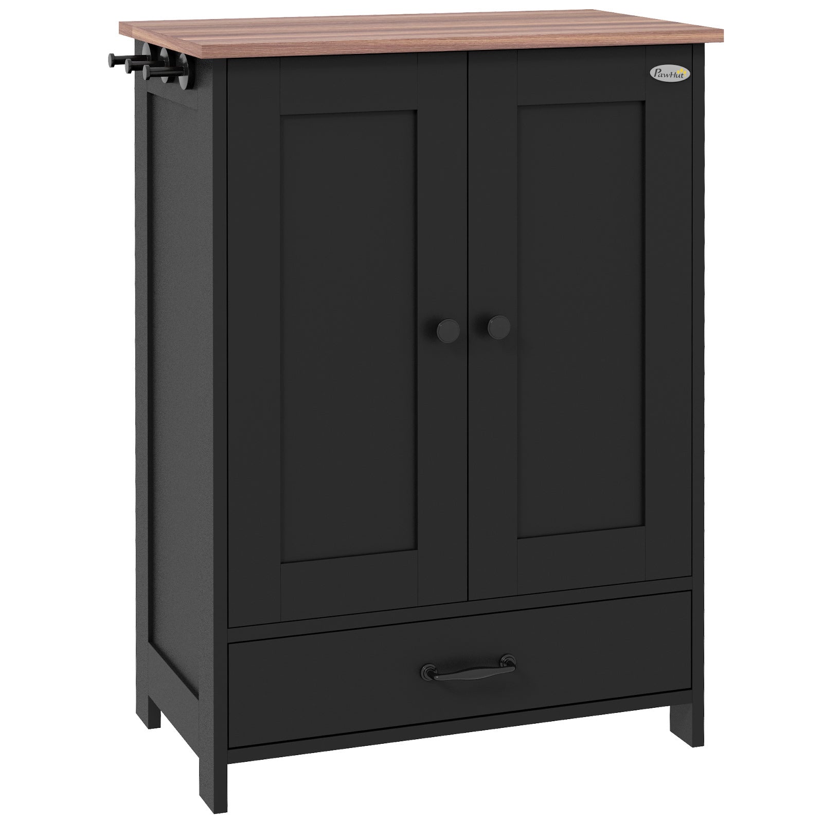 - 1 x Pet Feeding Station with Raised Dog Bowls, Adjustable Panel, Hooks, Black